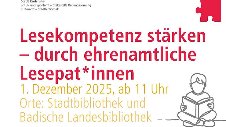 Unter dem Motto „Lesekompetenz stärken – durch ehrenamtliche Lesepat:innen“ findet am 1. Dezember ab 11 Uhr im Rahmen der Bildungsregion Karlsruhe ein gemeinsamer Fachtag mehrerer Bildungsinstitutionen statt. Auch die Pädagogische Hochschule Karlsruhe ist mit dabei.